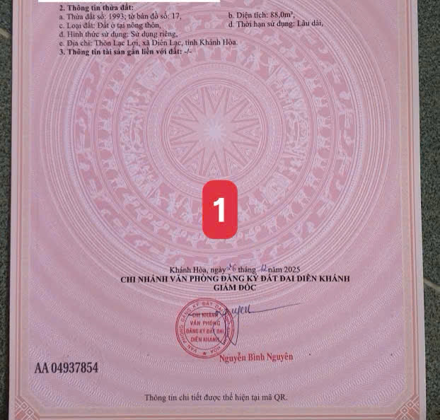 Trang chủ »Huyện Diên Khánh »Xã Diên Lạc »đát xã Diên Lạc 100% thổ cư